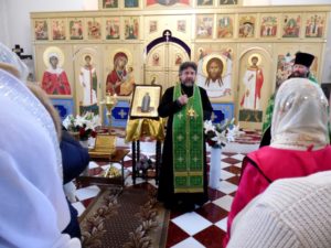 В храме был отслужен молебен, по окончании которого прихожане приложились к иконе и мощам Нила Столобенского.