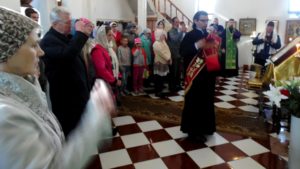 В 17час. 30мин. под торжественный колокольный звон и песнопения прихожане (от мала до велика) во главе с настоятелем храма протоиереем Валентином Сергиенко встречали участников крестного хода. На встрече присутствовал глава Ржевского района В.М.Румянцев.