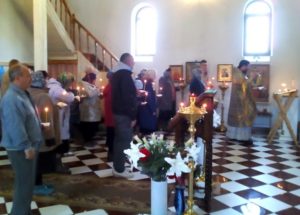 Отец Валентин в Раменье и Руднице поздравил прихожанок с наступающим праздником и пригласил всех на праздничное Богослужение в храм. А с теми женщинами, у кого нет транспорта, чтобы добраться до храма, договорился о времени и месте встречи, чтобы самому привезти их на службу.